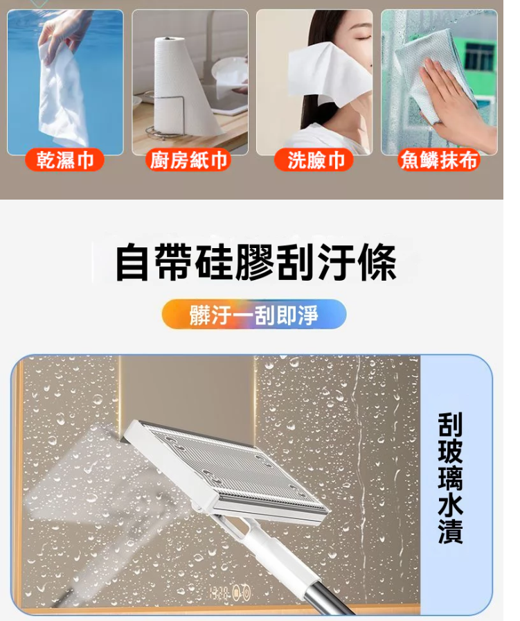 12分鐘前【台灣爆紅款 現貨秒發】3秒快速換布,免手洗超衛生,360度旋轉拖頭,深入縫隙無死角,磁磚、木地板都適用! - 【嘗鮮套餐】2入組-NT$980