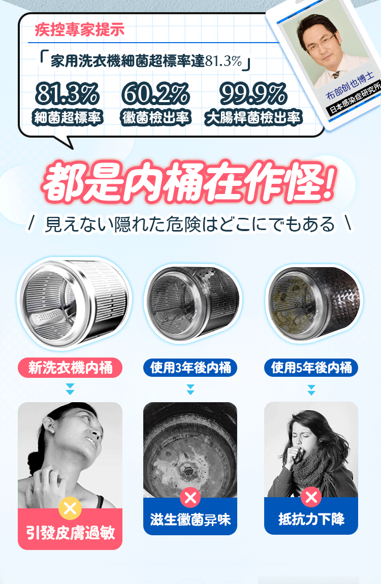 4分鐘前還洗衣機一個清新 ,一鍵免浸泡 洗衣機抑菌清潔液 淡淡清香_你值得擁有 - 【超值特惠】5入組 NT$1190
